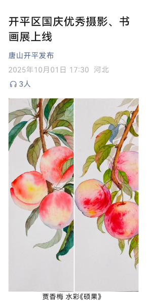 展覽中,多位農工黨黨員的佳作精彩亮相。開平區(qū)支委會主委馬群的國畫《共繪錦章》,以筆墨寄情,勾勒時代發(fā)展的壯闊圖景;黨員張紅武的國畫《好山河》,用蒼勁筆觸定格祖國山河的雄奇壯麗;黨員賈香梅的水彩畫《碩果》,以斑斕色彩描繪生活的豐碩與美好。