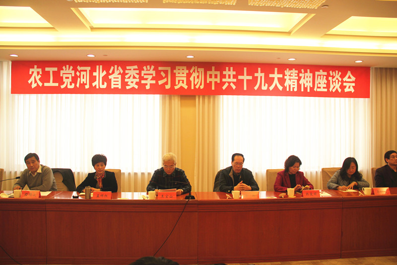 11月9日,農(nóng)工黨河北省委在石家莊召開座談會(huì),深入學(xué)習(xí)貫徹中共十九大精神。農(nóng)工黨省委主委王寶山出席會(huì)議并講話,省委會(huì)副主委徐英、孟祥紅、韓愛麗出席會(huì)議,駐會(huì)副主委經(jīng)順波主持會(huì)議。