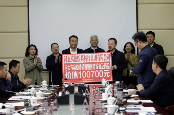 座談會(huì)上,河北冀德醫(yī)藥科技集團(tuán)有限公司向大方縣貓場(chǎng)鎮(zhèn)捐贈(zèng)價(jià)值10萬(wàn)余元的醫(yī)療設(shè)備及藥品。