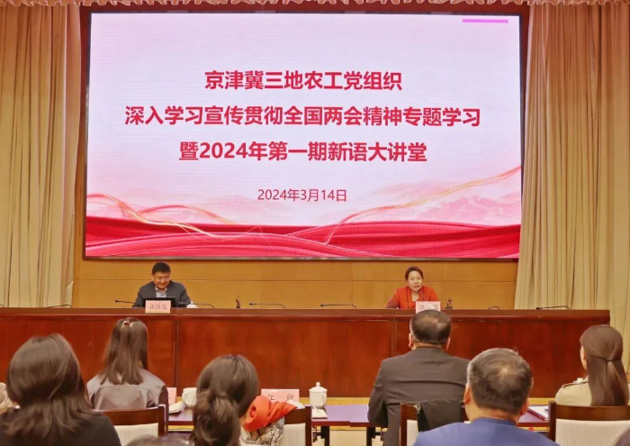 3月14日,農(nóng)工黨中央?yún)^(qū)域協(xié)同發(fā)展工作委員會,以及農(nóng)工黨北京市委、天津市委會、河北省委會聯(lián)合舉辦專題學習會議,深入學習宣傳貫徹全國兩會精神。本次會議以線上線下相結(jié)合的形式進行,北京設(shè)主會場,天津、河北等地設(shè)分會場。